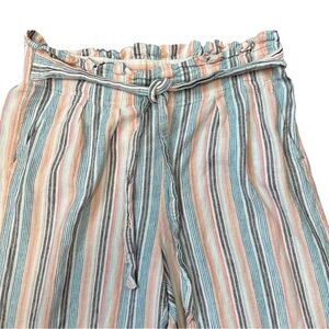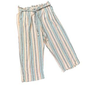 Zac & Rachel striped linen blend cropped wide-leg pants with paperbag waist M