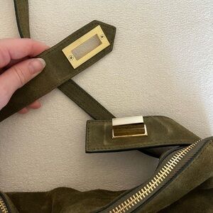 Claudia Firenze Suede Gold Lock Olive Green Handbag Cross Body Made in Italy