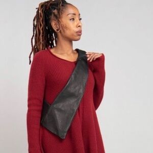 Trippen unique crossbody bag, a soft supple leather streamlined hand-made shoulder bag with double pockets and shaping to hug the body like a garment.