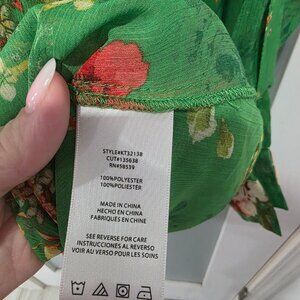 Kut From The Kloth Green Floral Button Up Blouse Women’s Large Sheer