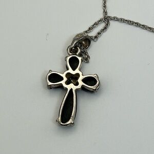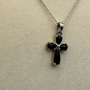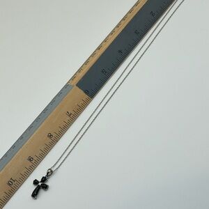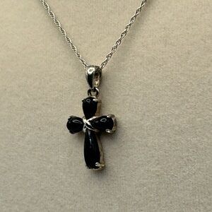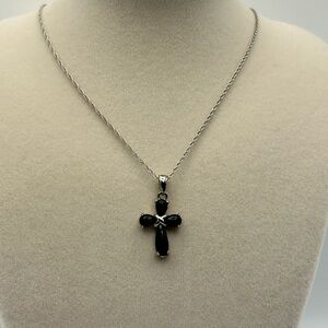 925 Sterling Silver & Black Onyx Cross Pendant Necklace 18" Stamped