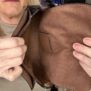 Coach Suede Brown and Tan Signature Crossbody Bag