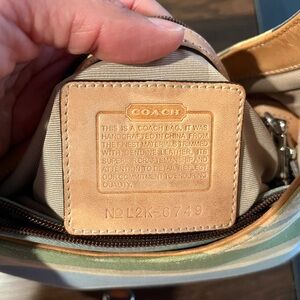 Super cute and unique coach purse with coin purse , has hang tag on both the purse and coin purse . It’s in good condition but it does have a couple of flaws as shown in pictures like on the back of purse it has some stains which are not as noticeable but added pictures of them ! Please see pictures, maybe a good wash will fix that ? Other than that it’s in good condition. Any questions please let me know