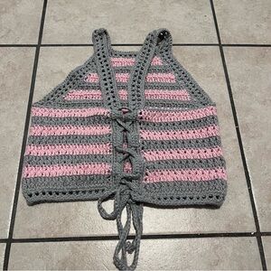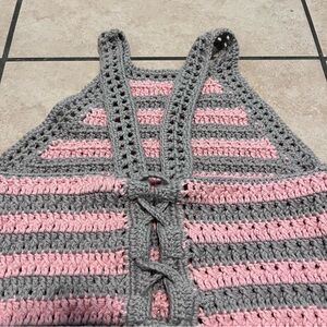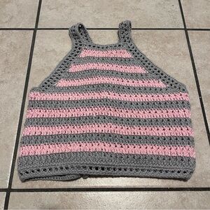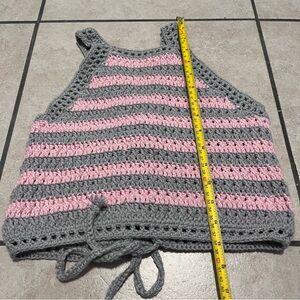 Boho Striped Handmade Crochet Knit Halter Crop Top Shirt Women's One Size