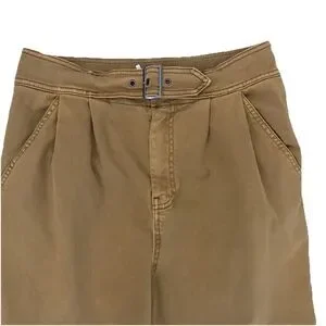 Free People Yellow Pleated Cotton Cropped Denim Casual Pants NWOT 12