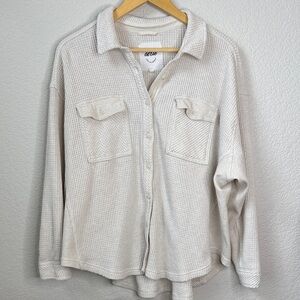 Aerie LumberJane Button Down Shirt Oversized Waffle Knit Cream size Medium