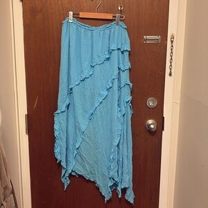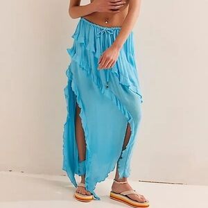 New without tags skirt from Free People. In the colour splish splash. Asymmetrical hem. Adjustable tie waist. Mini skirt lining inside because main part is quite sheer. Quite adjustable, fits me as an XL.