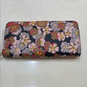 Fossil Women's Zipper Wallet - Black, Pink, and Brown Floral