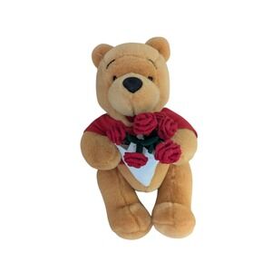 Disney Winnie the Pooh Plush Toy Red Shirt Holding Roses Valentine Birthday Gift