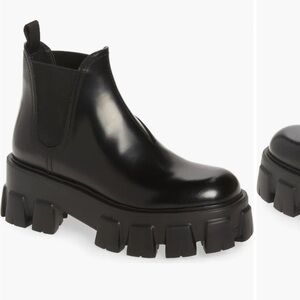Prada monolith brushed leather chelsea boots