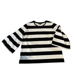 Lauren Ralph Lauren Top XL Navy Blue White Striped Bell Sleeve Knit Blouse