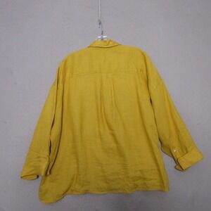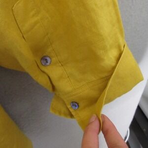 Magaschoni Top XL Mustard Yellow Linen Boxy Button Up Flowy Lagenlook Beach Boho