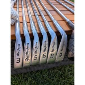 Set of 9 includes Vintage MacGregor Jack Nicklaus signature irons numbered 3, 4, 5, 6, 8, 9 and three additional wood clubs, 1, 3 & 5.