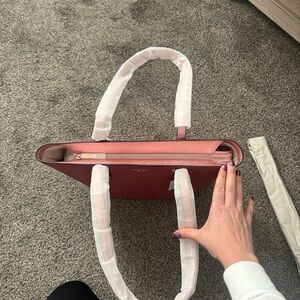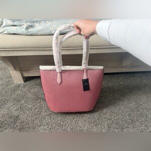 Elegant rose pink tote with sturdy handles. Ideal for daily use. Signature Kate Spade style.