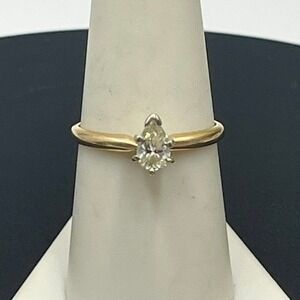 Kay Jewelry Vintage Estate Prong Pear 14K Gold Solitaire .30-.40 Diamond Ring 8