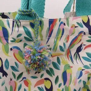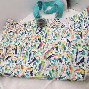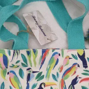 NEW Tommy Bahama Colorful Birds Tropical Toucan Reusable Large Tote Bag Cotton