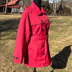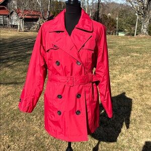 L.L. Bean Double Breasted Red Trench/Rain Liner Coat Women’s Size Large Petite