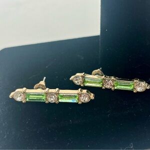 Vintage Rhinestone Bar Earrings – Green & Clear Crystal, Gold Tone