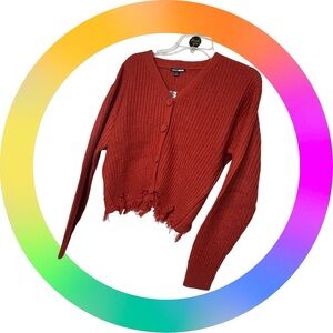 Fashion Nova Rust Frayed Hem Crop Cardigan Sz Large- Perfect accent ~ casual