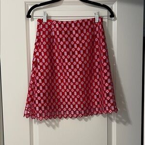 EUC! Sandro Red and Lilac Purple Lace Mini Skirt, Size Small (Size 1)