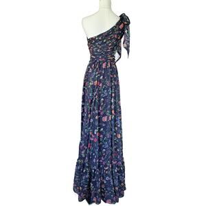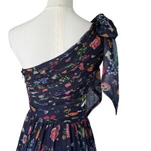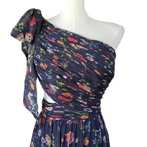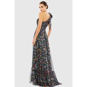 MAC DUGGAL Navy One Shoulder Cutout Floral Gown Floral Prom Formal Dress Size 0