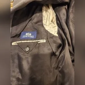 Sophisticated Stafford blazer in charcoal gray. Ideal for business or formal events. Features classic notch lapel and button closure.