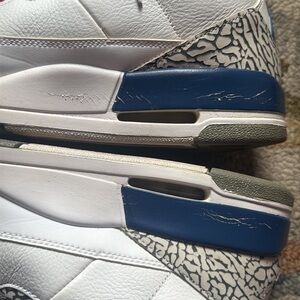 Air Jordan Retro 3 True Blue 2017 basketball sneakers, US Men’s size 10, pre owned great condition, paint crack flaws shown in photos