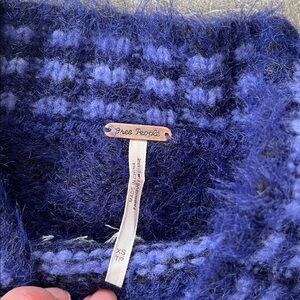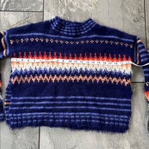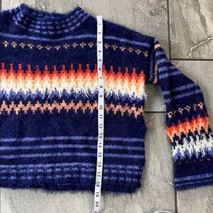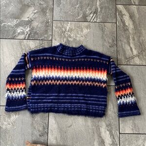 🧡 Free People Fair Isle Cropped Boxy Sweater Side Slit Size XS Blue Wool Blend