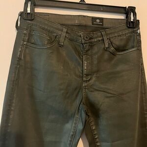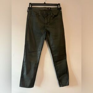 AG Adriano Goldschmied Prima Crop Coated Leatherette Jean in Olive Green size 27