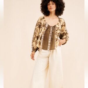 FREE PEOPLE NEW Elena printed billowy top -brown -medium