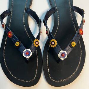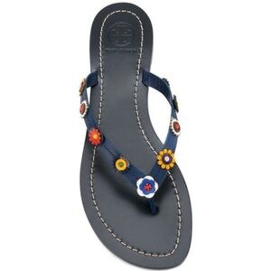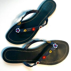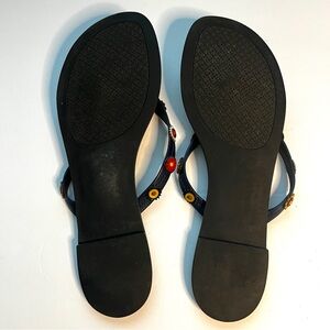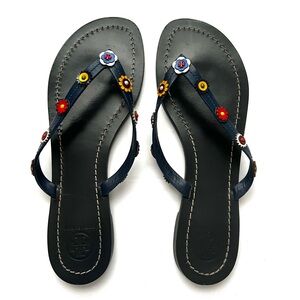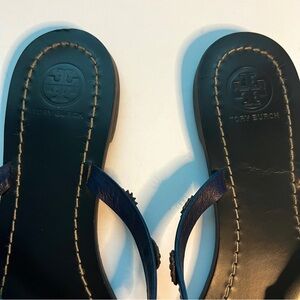TORY BURCH Marguerite Terra Leather Thong Sandals Flip Flops Navy Blue 8.5