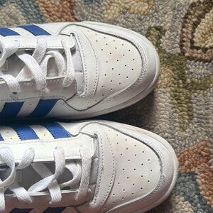 Adidas Forum retro White Blue basketball Sneakers, pre owned in great condition, US Men’s size 10.5, all dirt stains shown in picture can be easily cleaned, view all photos closely