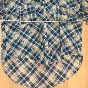 Free People sheer blue and cream plaid top