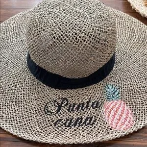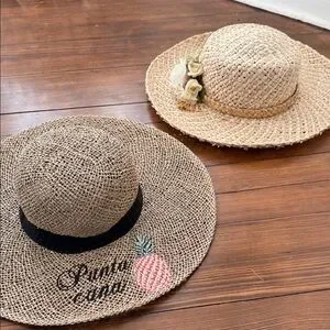 BUNDLE of 2 Charming straw sun hats, one featuring a delightful floral accent and the other Punta Cana. Perfect for sunny days.