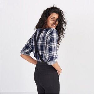 Chic black denim overalls by Madewell. Perfect for casual wear. Comfortable and stylish.