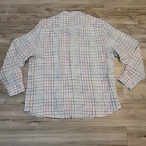 Tommy Bahama Linen Shirt Mens 2XL Hawaiian Plaid Floral AOP Multicolor.