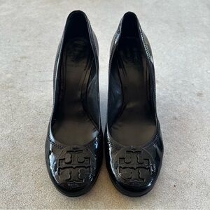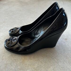 Tory Burch Sophie Black Patent Leather Wedge Heels Women’s Size 9.5