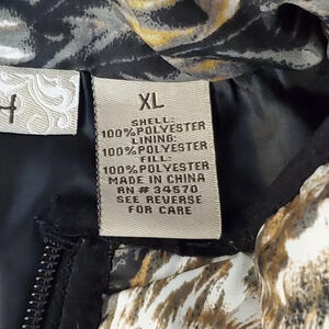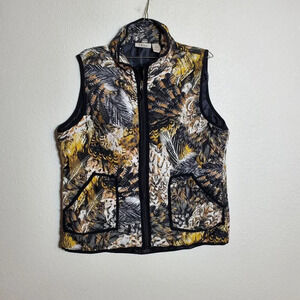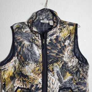 Fresh Puffer Vest XL Multicolor Abstract Feather Print Sleeveless Zip-Up