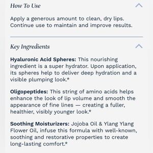 💋 It helps restore the look of healthy lips by delivering deep hydration for instant plumping and long-lasting comfort, while smoothing out the appearance of lip lines & wrinkles*