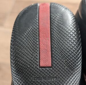 Authentic vintage Prada Sport (Linea Rossa) Mary Jane driving flats. Crafted in Italy from soft black leather with a velcro strap closure and the iconic rubber driving sole with the red Prada strip. A classic Y2K / 90s minimalist style that is comfortable for everyday wear.