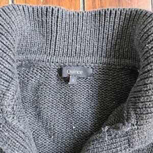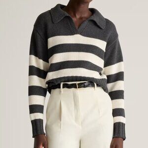 Quince 100% Organic Cropped Cotton Polo Sweater Charcoal/Offwhite Stripe Women's Small