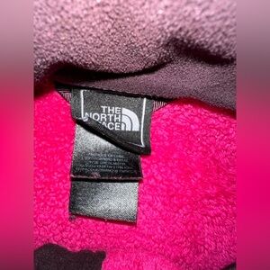 Cozy teddy jacket by The North Face. Vibrant pink color. Soft and warm material. Perfect for chilly days.