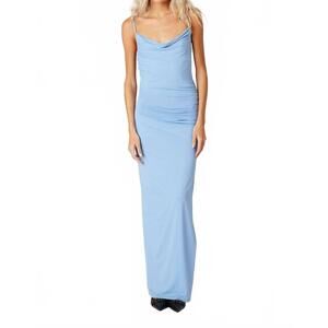 NEW COTTON CANDY LA alina draped jersey maxi slit party dress in periwinkle