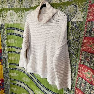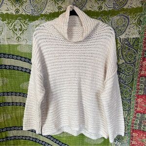 Aerie Beige Open Knit Wool Blend Cowl Neck Sweater Size Small