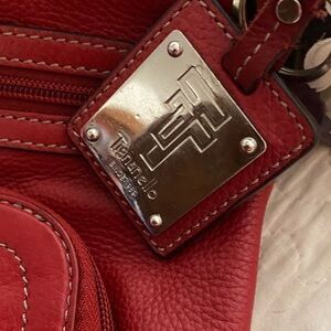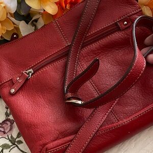 Elegant red crossbody bag with secure zip pockets. Ideal for daily use. Beautiful pebble leather.