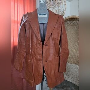 Elevate your style with this vintage brown leather jacket. size 36R in excellent condition.