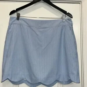 Stylish Vineyard Vines skirt with blue and white stripes. Iconic whale logo on label.