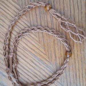 Set of 2 Jute pendant holder necklaces. Fill with your own gems. Adjustable length. Black/brown. Comes with one emerald flat gem.