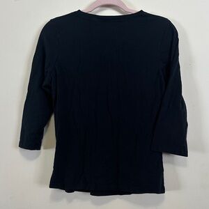 Black tee with ghost and pumpkin design. Features shiny accents. Perfect for festive occasions.