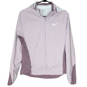 This is a womens Nike Shield running jacket in excellent condition! Jacket is reflective with an adjustable and removable hood.